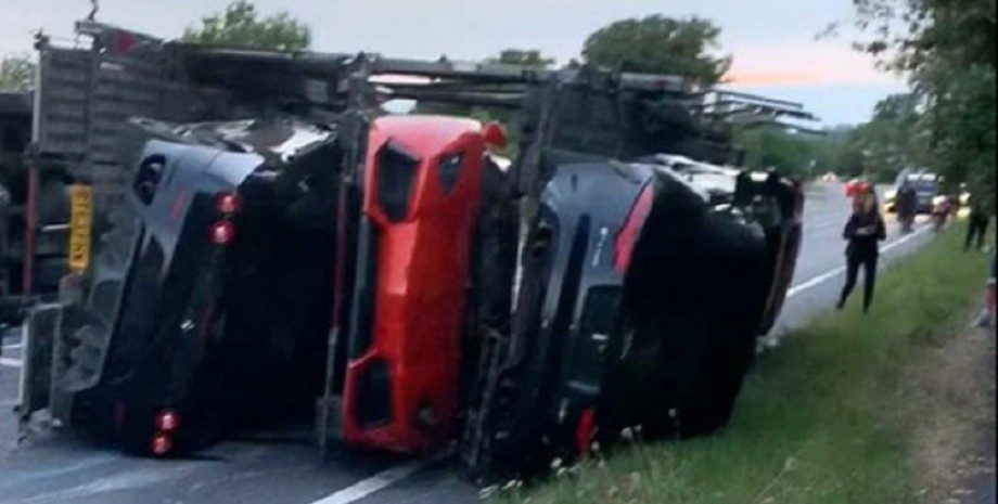 Фото: The Sun | Автовоз транспортировал 10 дорогих суперкаров Автовоз с 10 суперкарами попал в аварию на трассе в британском графстве Кент. В ДТП никто не пострадал, но машины получили серьезные повреждения. Related video В Великобритании произошло очень дорогое ДТП. На трассе А20 перевернулся автовоз, транспортировавший дорогие суперкары. Об этом пишет издание The Sun. Авария произошла в графстве Кент близ города Фарнингем вечером 23 августа. Автовоз завалился на бок во время выполнения маневра. К счастью, водитель грузовика не пострадал. Автомобили, наоборот, получили серьезные повреждения. Некоторые машины выкинуло с автовоза и они перевернулись, другие – получили повреждения при падении. После аварии полиции пришлось перекрыть трассу на несколько часов, чтобы расчистить ее. В общей сложности повреждено 10 авто. Самый дорогой суперкар на автовозе – Aston Martin Vanquish Zagato стоимостью 750 000 фунтов стерлингов ($950 000). Недешевыми являются также Lamborghini Aventador и Mercedes-AMG GTR Black Series. Кроме того, повреждения получили два Ferrari F430 Spider, Audi R8, Bentley Continental GT Speed, Nissan GT-R, Jaguar F-Type и BMW M3. Суммарная стоимость авто превышает 2 миллиона долларов. Ранее Фокус рассказывал, что в Великобритании разбили эксклюзивный Pagani за $11 миллионов, построенный специально для семикратного чемпиона «Формулы-1» Льюиса Хэмилтона. Также мы писали, что в Украине отдыхающие случайно утопили кроссовер Hyundai.
