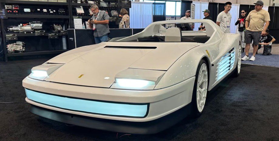 Фото: Gas Monkey Garage | Тюнеры сильно изменили культовый спорткар Американское тюнинг-ателье не только изменило дизайн экстерьера Ferrari Testarossa, но и модернизировало его интерьер. Бензиновый двигатель заменили на 306-сильный электромотор. Related video Тюнинг-ателье Gas Monkey Garage модифицировало спорткар Ferrari Testarossa. Модель получила множество улучшений, включая новую электрическую силовую установку. Об этом рассказали на сайте Drive. Концепт-кар Testa представили на выставке SEMA 2023 в Лас-Вегасе. Это один из самых необычных тюнинг-проектов на базе культового спорткара. Автомобиль окрасили в белый цвет. От крыши решили избавиться, превратив спорткар с жестким верхом в спидстер с компактным ветровым стеклом. Спереди появился новый бампер со светодиодной подсветкой. Также тюнеры изменили передние фары спорткара. Внешний вид дополняют современные колесные диски Ferrari белого цвета. Боковые воздухозаборники также получили подсветку. Задние фонари остались узнаваемыми, но выполнены по современной технологии. Интерьер Testa сильно отличается от стандартной модели. Вместо двух сидений установлены три отдельных кресла. При этом водитель сидит посередине, как в суперкаре McLaren F1. Также внутри появился большой дисплей, который является приборной панелью. Руль сохранил привычный внешний вид. Стандартный 4,9-литровый двигатель V12 заменили на электромотор мощностью 306 л.с. и 500 Нм крутящего момента. Он питается от аккумуляторного блока емкостью 84,6 кВт⋅час с заявленным запасом хода 362 км. Testa создана в единственном экземпляре. Неизвестно, будет ли продан этот необычный спорткар на аукционе. Ранее Фокус сообщал, что суперкар Ferrari 812 Superfast получил оригинальный тюнинг от ателье Mansory.