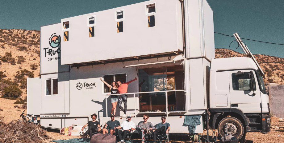 Передвижной отель создали на базе Mercedes Actros Автодом Mercedes Actros получил большой жилой модуль на два этажа. Внутри есть несколько гостиничных номеров, а также кухня, гостиная и санузел. Related video В Португалии превратили грузовой Mercedes-Benz Actros в большой дом на колесах. Его используют в качестве передвижного отеля. Об этом рассказывает сайт Carakoom. Идея создать отель на колесах родилась в 2017 году у двух португальских любителей серфинга Эдуардо и Даниэле. Впоследствии они начали воплощать в жизнь проект TSH (Truck Surf Hotel — грузовик-отель для серверов). На шасси Mercedes Actros установили специальный жилой модуль. Когда авто остановлено, то у него раскладывается второй этаж. На первом этаже оборудовали санузел, кухню-гостиную с обеденным столом на 10 человек и диваном. На стене повесили проектор. Кроме того, раскладывается небольшая терраса. На втором этаже разместили четыре стандартных номера с двухъярусными кроватями и один номер люкс с большой двуспальной кроватью. На Truck Surf Hotel устраивают семидневные туры по побережью Атлантики для серферов стоимостью от 790 евро. Кроме того, Эдуардо и Даниэле предлагают услуги инструктора и за 150 евро готовы обучать начинающих. Кстати, недавно презентовали роскошный автодом Brabus за $1,5 миллиона. Он тоже построен на платформе Mercedes Actros. Также Фокус рассказывал о самом быстром в мире автодоме на базе Ferrari.