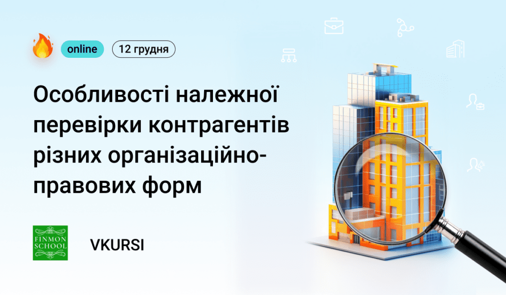 FinMon School та платформа великих даних VKURSI для перевірки контрагентів запрошують на безкоштовний вебінар «Особливості належної перевірки контрагентів різних організаційно-правових форм», присвячений обговоренню особливостей та кращих практик належної перевірки контрагентів різних організаційно-правових форм.