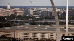На переднем плане здание Пентагона в пригороде Вашингтона. Арлингтон, штат Вирджиния. Архивное фото.