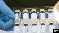На этой фотографии, сделанной 9 августа 2022 года, запечатлены флаконы с вакциной от оспы обезьян JYNNEOS