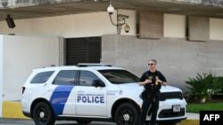 Полиция у здания суда в Палм-Бич, штат Флорида, где слушается дело о покушении на Дональда Трампа. 16 сентября 2024 г.