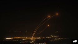 Израильская система ПВО «Железный купол» перехватывает ракеты, запущенные из Ливана, 26 октября 2024 года. (архивное фото AP/Leo Correa)
