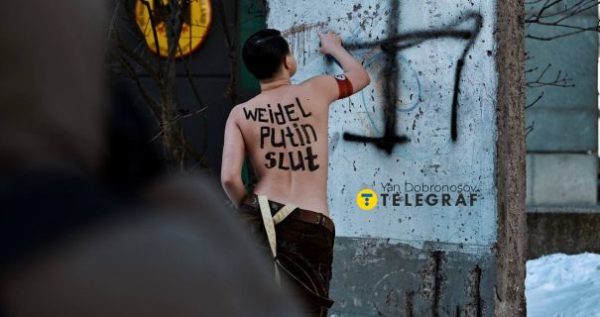 В субботу, 23 февраля, перед посольством Германии в Киеве прошла акция протеста против кандидата на пост канцлера Алис Вайдель