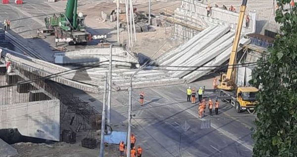 На улице Александра Довженко в Киеве во время работ по монтажу балок Дегтяровского моста произошел обвал