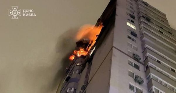 В Киеве работает ПВО: российский БпЛА попал в многоэтажку, горят квартиры0
