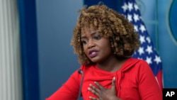 Пресс-секретарь Белого дома Карин Жан-Пьер выступает на ежедневном брифинге в Белом доме в Вашингтоне в пятницу, 6 декабря 2024 года. (AP Photo/Susan Walsh)