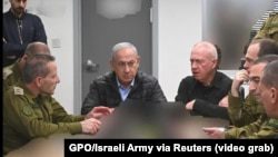 Премьер-министр Израиля Биньямин Нетаньяху наблюдает за операцией против Ирана из оперативного центра Министерства обороны Израиля в Тель-Авиве, Израиль, 25 октября 2024 года. (GPO/Israeli Army via Reuters)