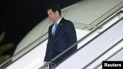 Госсекретарь США Марко Рубио по прибытии в международный аэропорт в Джидде, Саудовская Аравия, 10 марта 2025 года (фото Saul Loeb/Pool via Reuters).