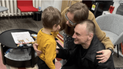 Андрей Кузнечик с сыном и женой после освобождения. Вильнюс, 12 февраля 2025 года