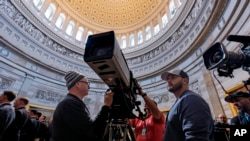 Подготовка к церемонии инаугурации в Ротонде Капитолия в Вашингтоне, суббота, 18 января 2025 года. (фото AP/J. Scott Applewhite)