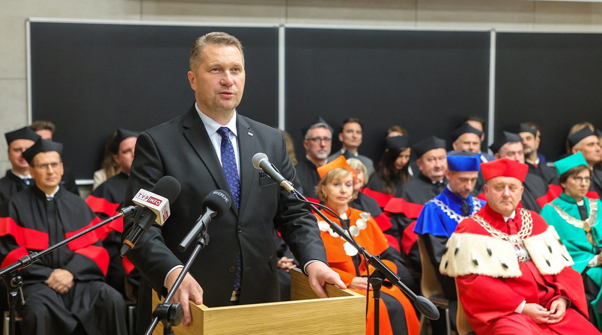 Министр образования и науки Польши Пшемыслав Чарнек во время торжественной инаугурации нового 2023/2024 учебного года в Люблинском Политехническом университете, 2 октября 2023 года.Фото: PAP/Wojtek Jargiło