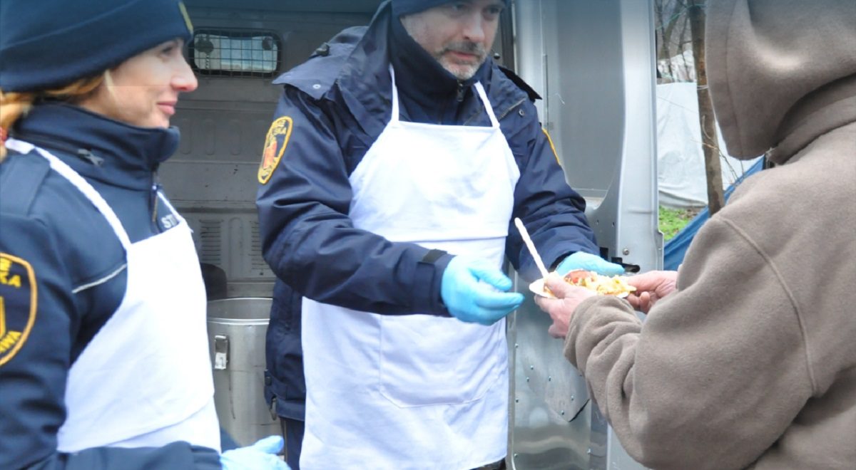 «Мы распределили обязанности: «Каритас» – варит супы, это крайне необходимое питание, которое доставляется дважды в неделю в известные полицейским места, где бездомные люди получают такую помощь. Зачастую они уже ждут полицейских, которые приезжают в определенное время и доставляют теплую еду нуждающимся», — сказал Славомир Смык.