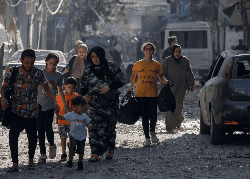 Палестинцы эвакуируются из одного из районов города Газа 11 октября 2023 года. (Mohammed Abed/AFP через Getty Images)