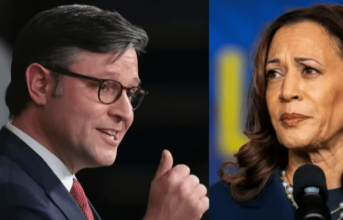 Вице-президент Камала Харрис критикует спикера Палаты представителей Майка Джонсона. Тот изначально обещал отменить Закон о чипах и науке, направленный на противодействие Китаю, но позже отказался от своих слов.