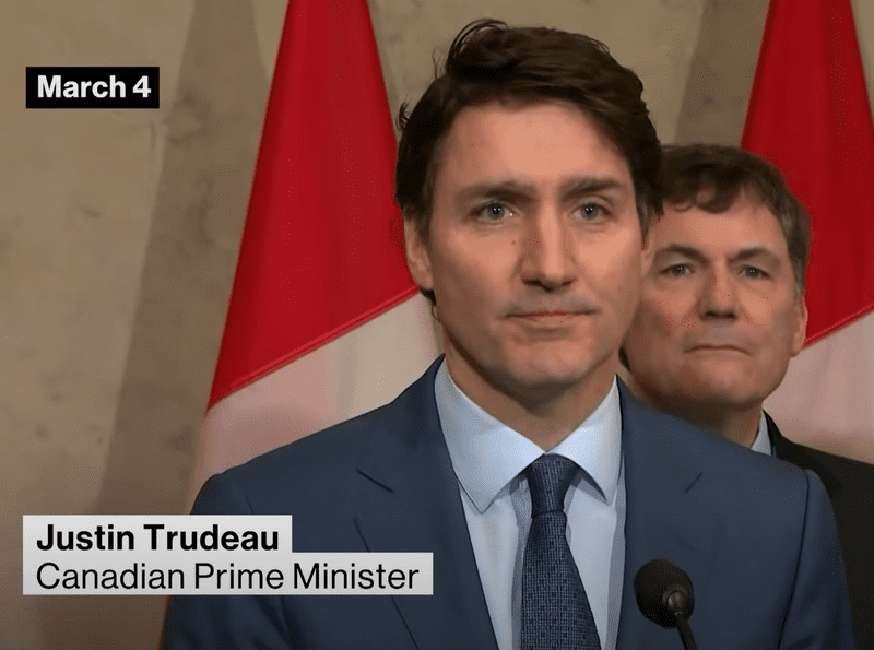 Трюдо, выступая через несколько часов после того, как Трамп начал торговую войну против Мексики и Канады, объявил о немедленном введении 25-процентных тарифов на американский импорт на сумму 30 миллиардов канадских долларов. Если потребуется, При необходимости Канада нацелится еще на 125 миллиардов канадских долларов через 21 день.