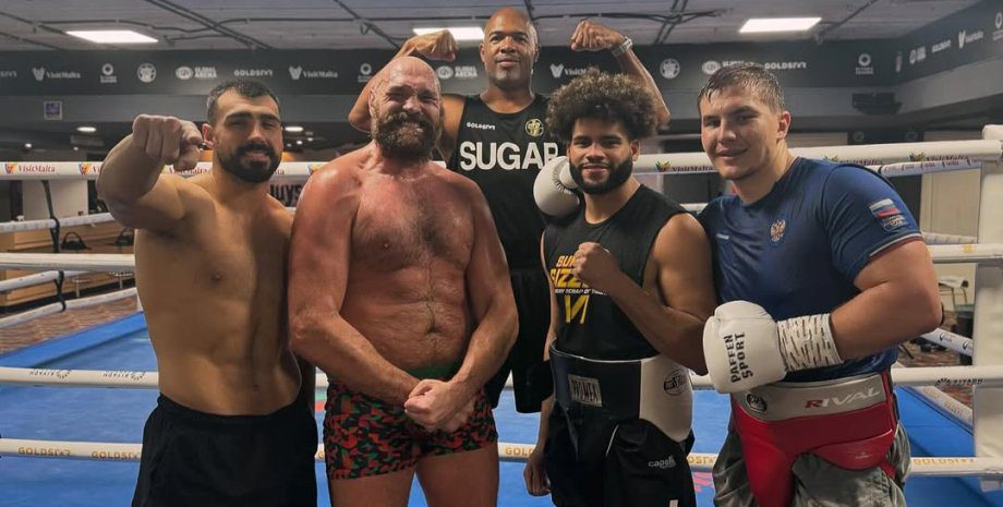 Фото: instagram/tysonfury | Тайсон Фьюри спаррингуется с россиянином Алексеем Дроновым (на фото — справа) На фото Тайсона Фьюри, сделанном после тренировки, среди его спарринг-партнеров заметили боксера Алексея Дронова, выступающего по контракту с МВД России. Британский боксер Тайсон Фьюри накануне реванша с украинским чемпионом Александром Усиком, который состоится 21 декабря, показал фото со своей спарринг-тренировки в боксерском зале Kronk Gym в США. На фотографии среди других есть российский боксер Алексей Дронов, который подписал контракт с Министерством внутренних дел России и причастен к войне РФ против Украины, как свидетельствуют данные Министерства молодежи и спорта Украины. «Работаю, как проклятый, чтобы вернуть себе чемпионство», — подписал фото предыдущий чемпион мира по боксу в тяжелой весовой категории. В Министерстве молодежи и спорта Украины сообщают, что российский боксер Алексей Дронов, представляющий клуб «Динамо», выступает по контракту с российским МВД.