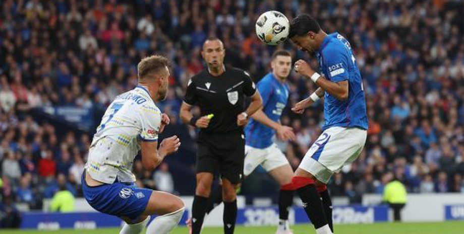 Фото: Daily Star | «Рейнджерс» — «Динамо» В начале второго тайма бразилец Жефте собрал две желтые карточки и удалился. Но лишь на 82-й минуте динамовцы все-таки воплотили в забитые мячи свое численное и игровое преимущество. Related video Киевское «Динамо» вышло в плей-офф Лиги чемпионов, матч третьего квалификационного раунда Лиги завершился со счетом 2:0 в пользу гостей. В первом тайме предпочтительнее выглядели хозяева, но неосновательно. В начале же второго тайма бразилец Жефте собрал две желтые карточки и удалился. 20-летний нападающий не смог спокойно наблюдать за тем, как Андрей Ярмоленко непринужденно демонстрировал технику владения мячом и действовал достаточно грубо. Числено преимущество, если судить по голевым моментам, было практически незаметно. До 82-й минуты, когда вышедший на замену Александр Пихаленок сместился в центр штрафной и точно пробил в ближний нижний угол. И уже через две минуты Назар Волошин удвоил преимущество в роскошной контратаке. Владимир Бражко со своей половины поля вырезал диагональ на левый фланг, где Волошин, сыграв в стеночку с Шапаренко, в падении завершил идеальный росчерк футбольной геометрии Теперь победитель пары «Рейнджерс» — «Динамо» сыграет с австрийским «Зальцбургом», который оказался сильнее нидерландского «Твенте». Матч в Нидерландах завершился боевой ничьей 3-3. Но австрийцы вышли в плей-офф за счет гола в первом матче. Напомним, что перед матчем «Рейнджерс» — «Динамо» букмекерские конторы считали фаворитом хозяев, а не гостей. Также сообщалось о статистике матчей Глазго «Рейнджерс» и «Динамо» в Кубке европейских чемпионов.