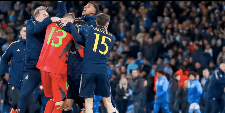 Фото: Скрин видео | Андрей Лунин принимает поздравления после серии пенальти Реала vs Ман Сити По словам экс-защитника «Ливерпуля» Джейми Каррагера, в послужном списке Андрея Лунина выдающееся достижение: 10 сейвов из 26 пенальти. Как написала Marca, «Лунин продлевает срок жизни мадридской легенды». Related video Бывший защитник «Ливерпуля», а ныне ведущий CBS Sports, Джейми Каррагер прокомментировал игру голкипера мадридского «Реала» и сборной Украины Андрея Лунина в четвертьфинальном матче на поле «Ман Сити». Фрагмент эфира опубликован на канале CBS Sports Golazo в YouTube. Страж ворот «Сливочных» действовал практически без ошибок все два часа игрового времени, его двух сейвов и точных ударов коллег хватило, чтобы выйти в полуфинал и оказаться в двух шагах от европейского триумфа. В серии пенальти Лунин отразил удар португальца Бернардо Силвы, попутно отомстив за гол в первом матче, и хорватского полузащитника Матео Ковачича. Каррагер отметил выдающуюся статистику Лунина по части 11-метровых. «Прекрасная статистика по пенальти: сейчас у него, я думаю, 10 сейвов из 26», — сказал он. «Интересно, обсуждался ли такой удар заранее [удар пришелся по центру прямо во вратаря]. Бернардо Силва промахнулся. Думаю он сразу решил сделать «паненку», но голкипер проявил хладнокровие», — отметил Ричардс после матча. Лунин не отбил удар с точки своего коллеги Эдерсона, хотя и угадал направление удара. По словам бывшего нападающего «Арсенала» Тьерри Анри, удар пришелся точно в нижний угол, поэтому его было просто невозможно отбить, а в полуфинал в противостоянии «Реала» и «Сити» вышла команда, которая лучше защищалась. Каррагер сказал, что Карло Анчелотти сделал верный выбор в пользу Лунина, а не испанца Кепы Аррисабалаги, пока, «возможно, лучший голкипер мира» Тибо Куртуа находится в лазарете. «Это очевидный выбор голкипера. Куртуа не играл из-за травмы, он, возможно один из лучших голкиперов мира, среди двух-трех лучших. И не буду пытаться произнести его имя… Аррисабалага, арендованный у «Челси», его не видно, а он стоил серьезных денег. И он [Лунин] его вытеснил. Я только что назвал его статистику: 10 сейвов из 26 пенальти. Это выдающееся достижение», — сказал Каррагер. Бывший защитник «Ливерпуля» также добавил, что не стоит забывать и о серьезной ошибке Лунина в первом матче в Мадриде, когда Бернардо Силва забил со штрафного. Вместе с тем он проявил себя в выездном матче и «теперь герой — он будет на разворотах всех спортивных газет в Испании». Джейми Каррагер — об игре Лунина Аналитики портала Whoscored удостоили украинского голкипера самой высокой оценки за матч — 9,2. Тогда как в первом матче 1/4 финала у Лунина была худшая оценка среди игроков обеих команд (большей частью за пропущенный гол со штрафного). К слову, за вчерашнюю ночь Лунин стал самым популярным из украинских спортсменов. После лигочемпионского матча по количеству подписчиков в Instagram (2,1 млн) он обошел Махаила Мудрика (1,92 млн) и боксера Александра Усика (2,03 млн). Испанское издание Marca отметило непривычную статистику для «Реала», которому пришлось практически весь матча играть от обороны. Владение мячом мадридской команды на поле «Сити» было на уровне 33%. Статистика по ударам 33:8, а по угловым — 18:1 не в пользу «Сливочных». Ко всему прочему, игроки «Сити» сделали 846 передач, тогда как испанцы — только 373. Украинский вр