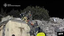 Спасатели, работающие на месте российской воздушной атаки в Днепре, 26 октября 2024 года