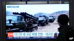На телеэкране демонстрируются архивные изображения северокорейских солдат во время новостной программы южнокорейского ТВ, 18 октября 2024 года (AP Photo/Ahn Young-joon)