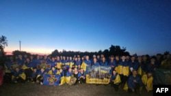 На этой фотографии, опубликованной Telegram-каналом президента Украины Владимира Зеленского 25 июня 2024 года, изображены граждане Украины, которые вернулись из российского плена во время обмена военнопленными.