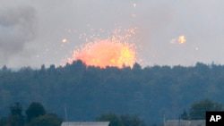 Мощный взрыв на складе боеприпасов на военной базе в Калиновке, Украина, 27 сентября 2017 года.